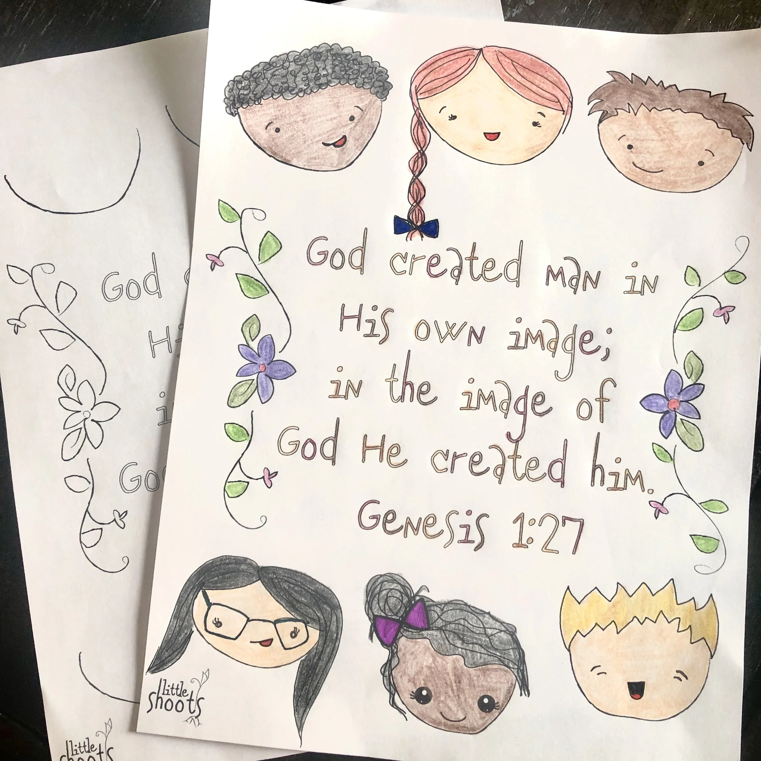 Use this coloring sheet to celebrate the beauty of God’s creation! Finish drawing the faces of people made in God’s image!